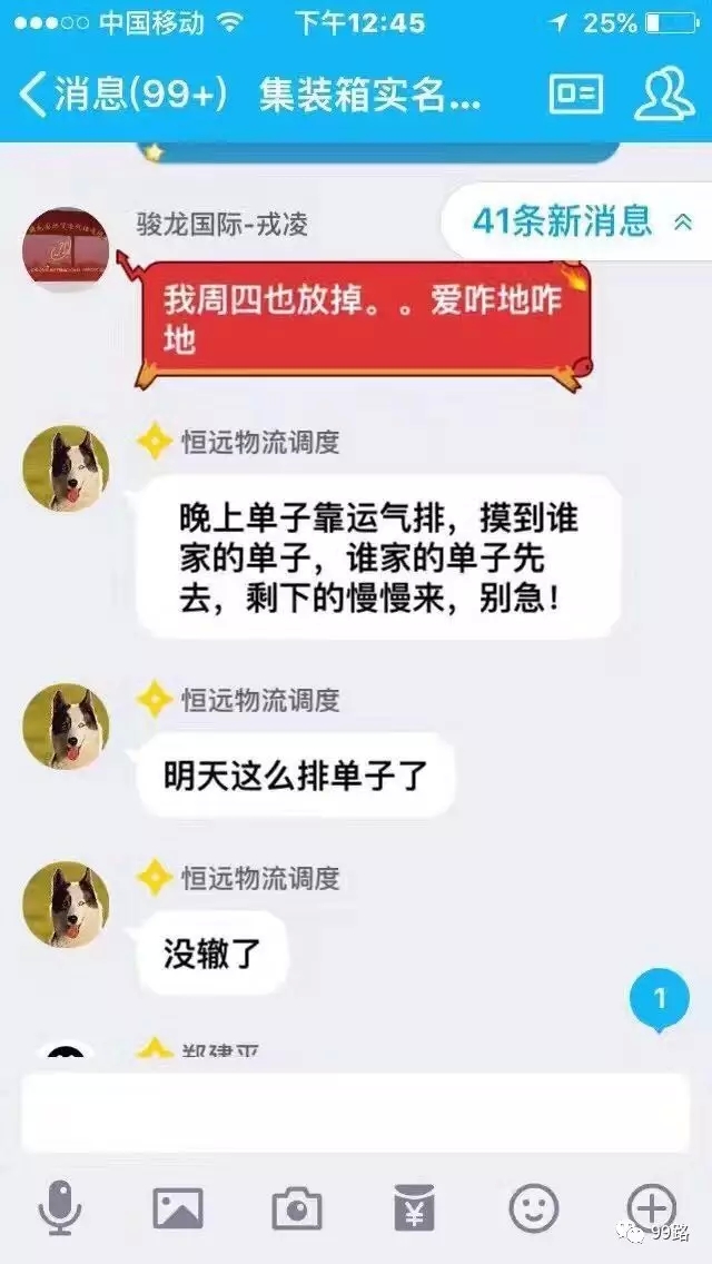 ![]() 客户催司机准点到达工厂装箱是天经地义的事情,难道车子不到,你就一直不催?等到工厂全部下班,或者深更半夜再去催?客户有权了解自己委托车行所拖运的任何运力信息。平时难道都不是这样天天催吗?现在运力紧张,有求于我们,我们觉得自己很牛逼,让崔都不能让人催了,要宣传体谅了?客户可以催,我们尊重客户的权利!同样我们也需要尊重,而且是一如既往的尊重与配合!媒体此时打同情牌有博眼球之嫌,大家无需说些客套话!